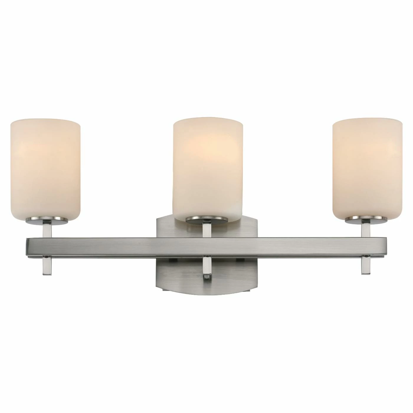 Give your decor a contemporary upgrade with the Trans Globe Lighting 20353 Ridge Rail 3-Light Bathroom Vanity Light. This triple sconce looks great in any setting with frosted cylindrical shades and a metal wall plate in your choice of available finish options. Mount it up or down to suit your space. Requires three 60-watt medium E-26 type A bulbs (not included).