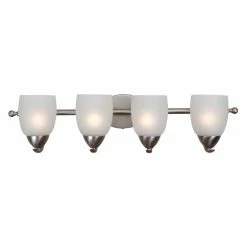 Superbly crafted, this Yosemite Home Decor Mirror Lake 1261-4V Vanity Light is supported by a steel frame and boasts a white etched glass shade. This bathroom vanity light requires four 100-watt bulbs, not included.