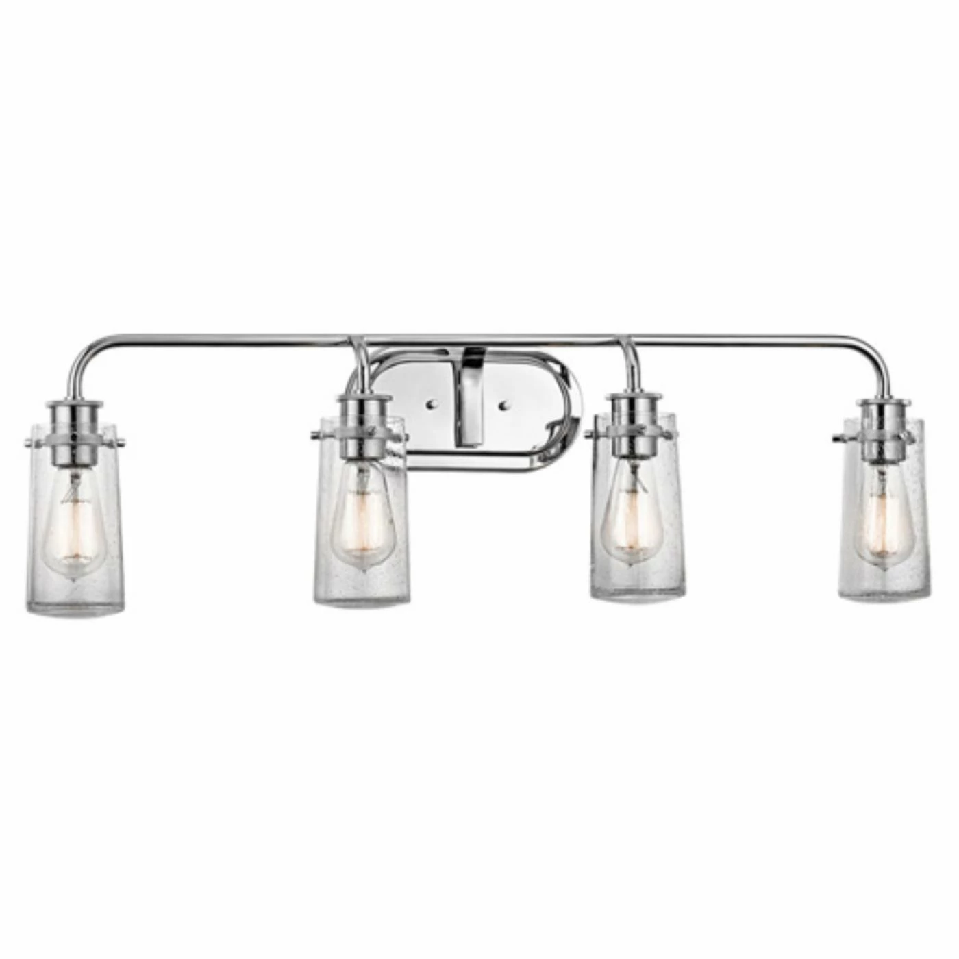 Brighten up your bathroom with this Kichler Braelyn 45460CH Bathroom Vanity Light. It boasts quality steel construction along with glass shade, and comes in your choice of available finish. Requires four 100-watt bulbs, not included.