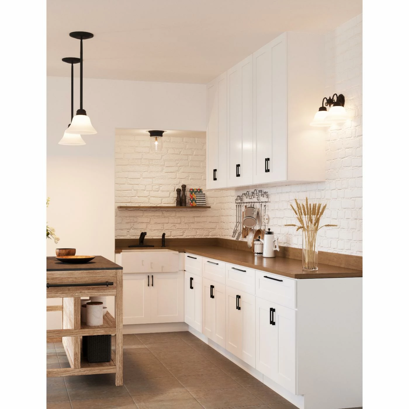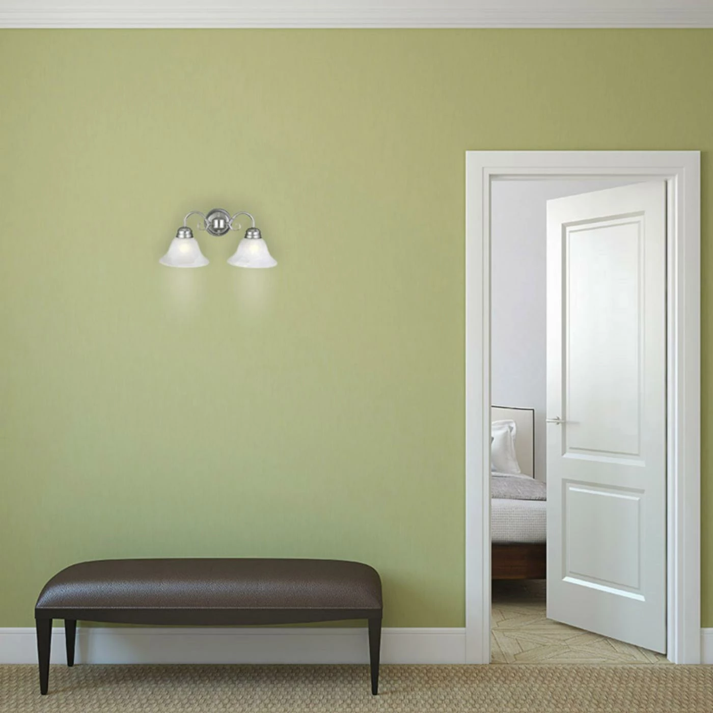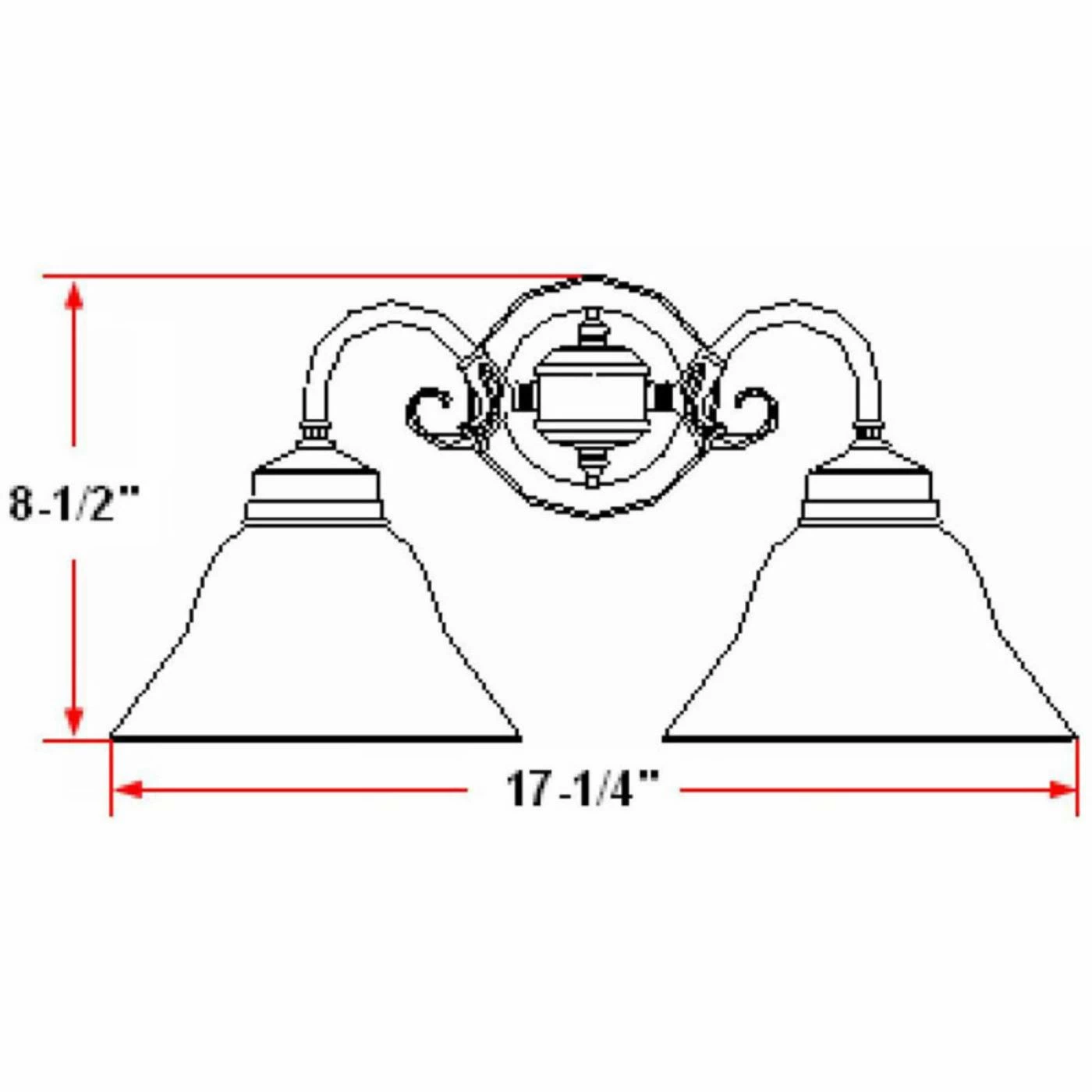 Give your bathroom an elegant classical makeover with the Design House Millbridge 2 Light Bathroom Vanity Light. This two-socket sconce is perfect for your single vanity, made from steel and damp-rated for bathroom use. The 60-watt sockets have frosted glass tulip shades and are mounted to the round backing plate by scrolled arms. Install the lights facing up or down as desired. Match the light to your dΓ©cor by choosing from the available finish colors. Bulbs are not provided.