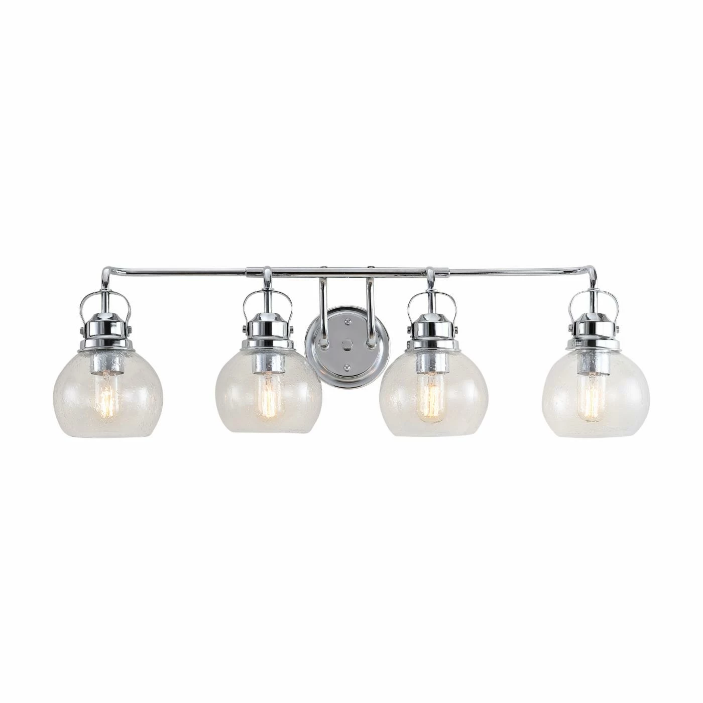 The JONATHAN Y JYL Shirley 4 Light Vanity Light creates brilliant illumination with its series of four bulbs. Each bulb socket is housed within a seeded glass shade in a clear finish that allows the light to shine through unfiltered. The base of this vanity light is constructed of metal and finished in a chrome tone that accents its look with contemporary flair.
