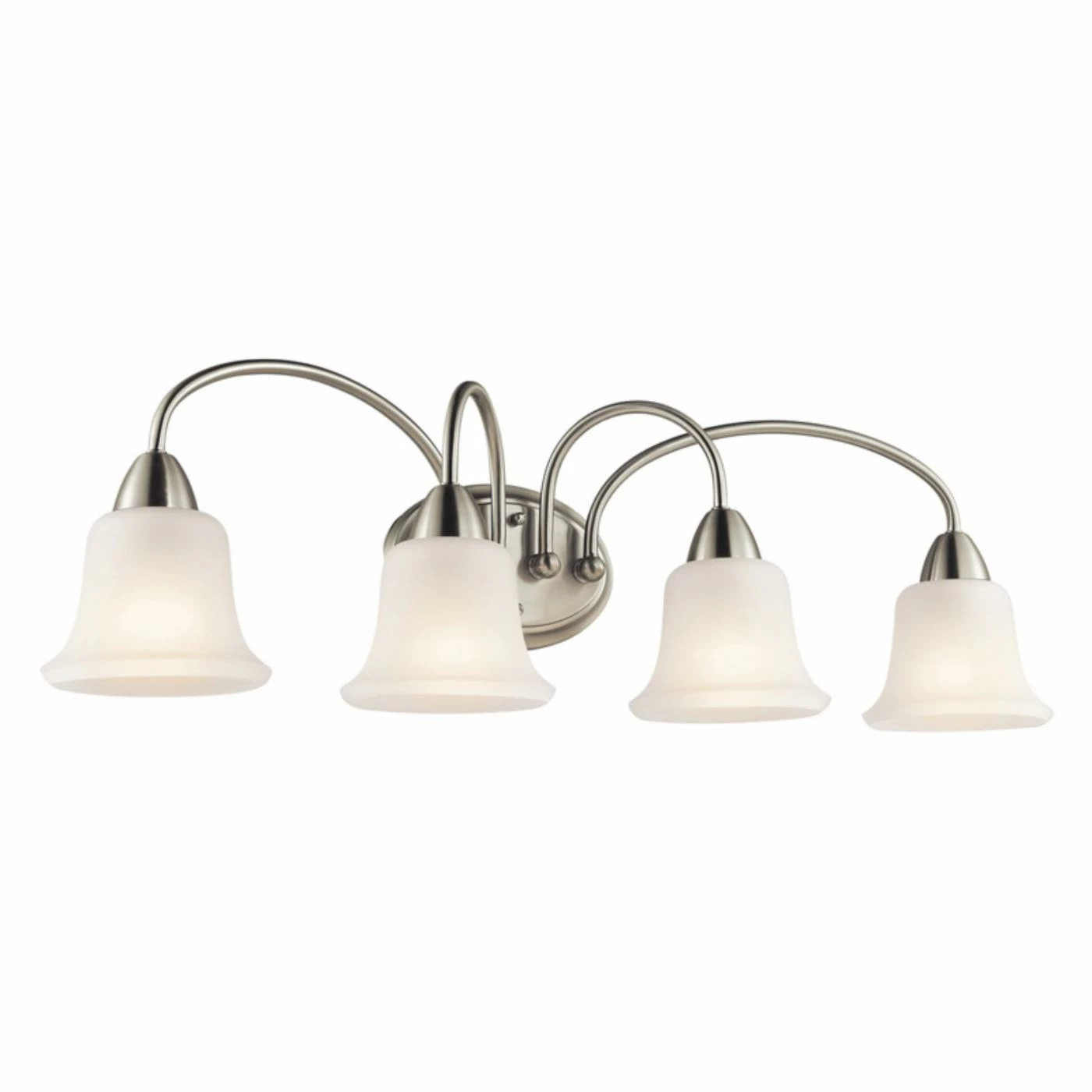 Chase away the darkness with the Kichler Nicholson 45884 Vanity – 33 in. With its simplistic and stylish design, the four-lamp light accessory provides a warm glow in the shower and bath area for a relaxing ambience. This trendy bath light has an etched glass diffuser that provides generous illumination to your private sanctuary. The chic light accessory is designed in a transitional style and will enhance the decor style of traditional as well as contemporary homes.