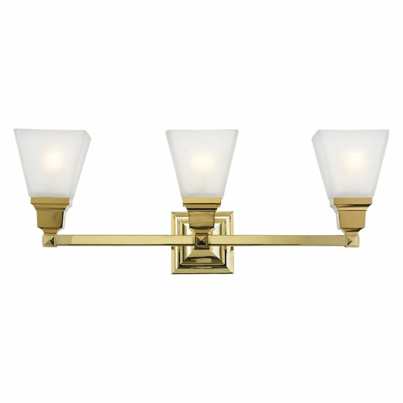 Sleek and smooth, the Livex Lighting Mission 1033 3 Light Bathroom Vanity Light illuminates your bath in style. Requires three 100-watt medium base bulbs (not included).
