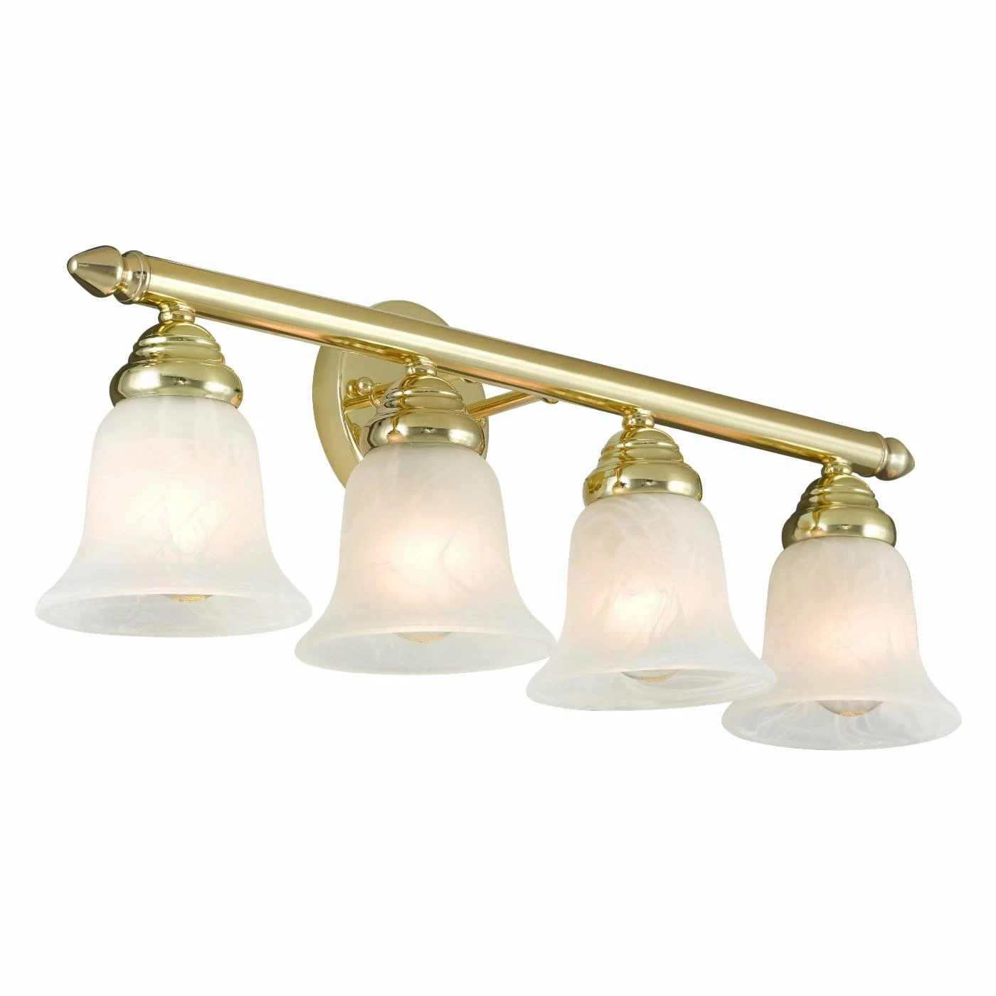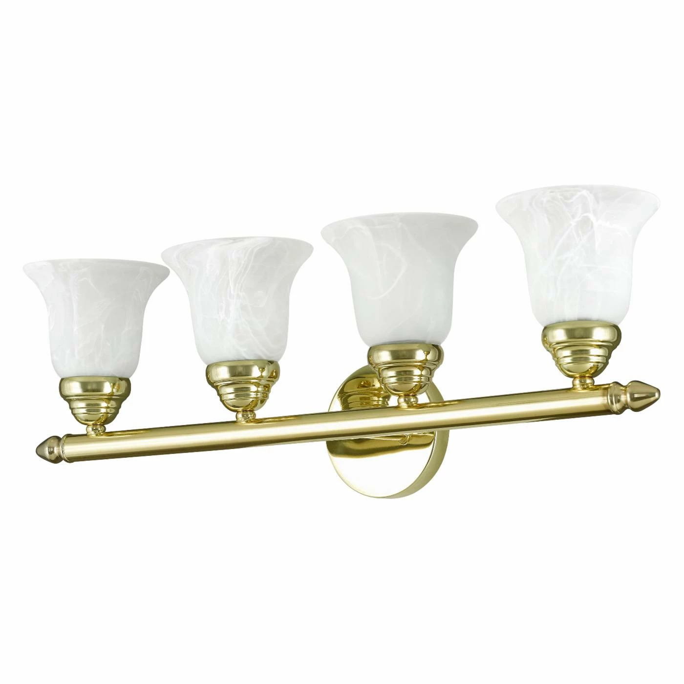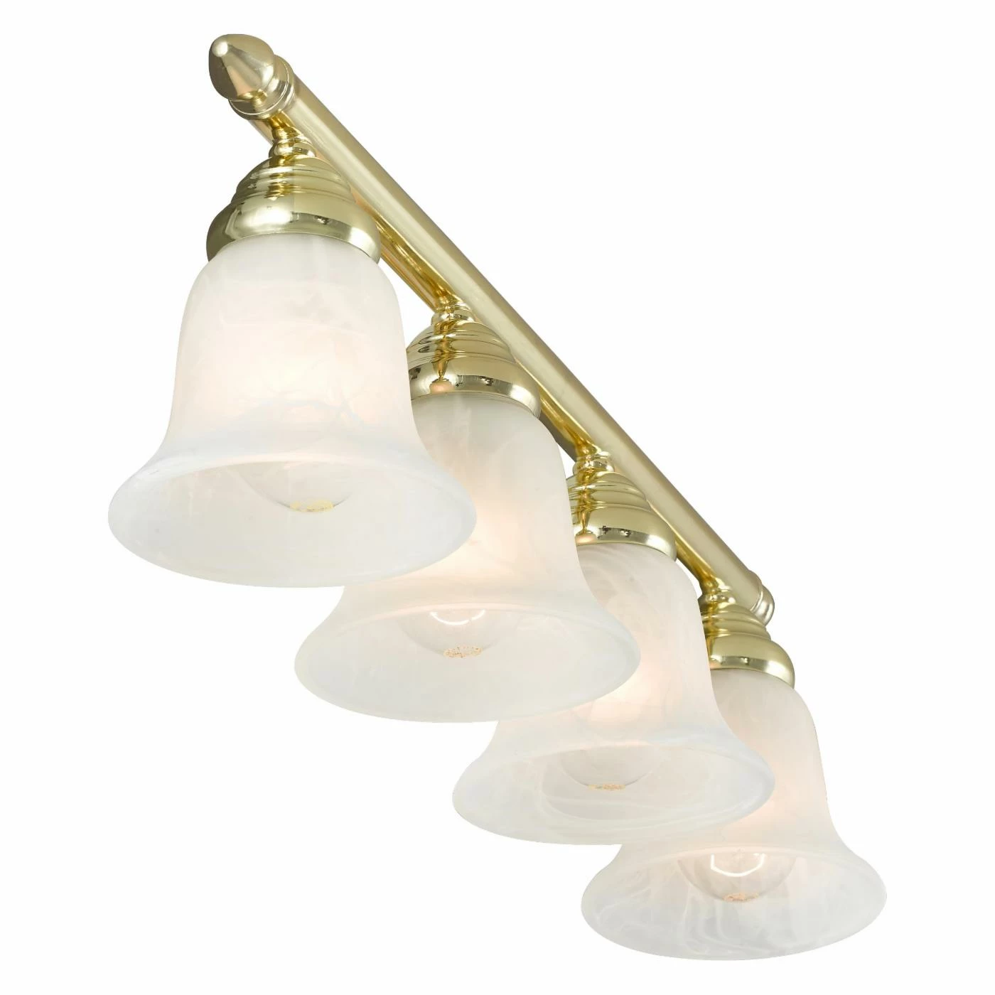 Clean design elements, such as white alabaster glass and a polished brass finish, make this Livex Lighting Neptune 1064-02 Bathroom Vanity Light stand out. This vanity light requires four 100-watt incandescent bulbs (not included).
