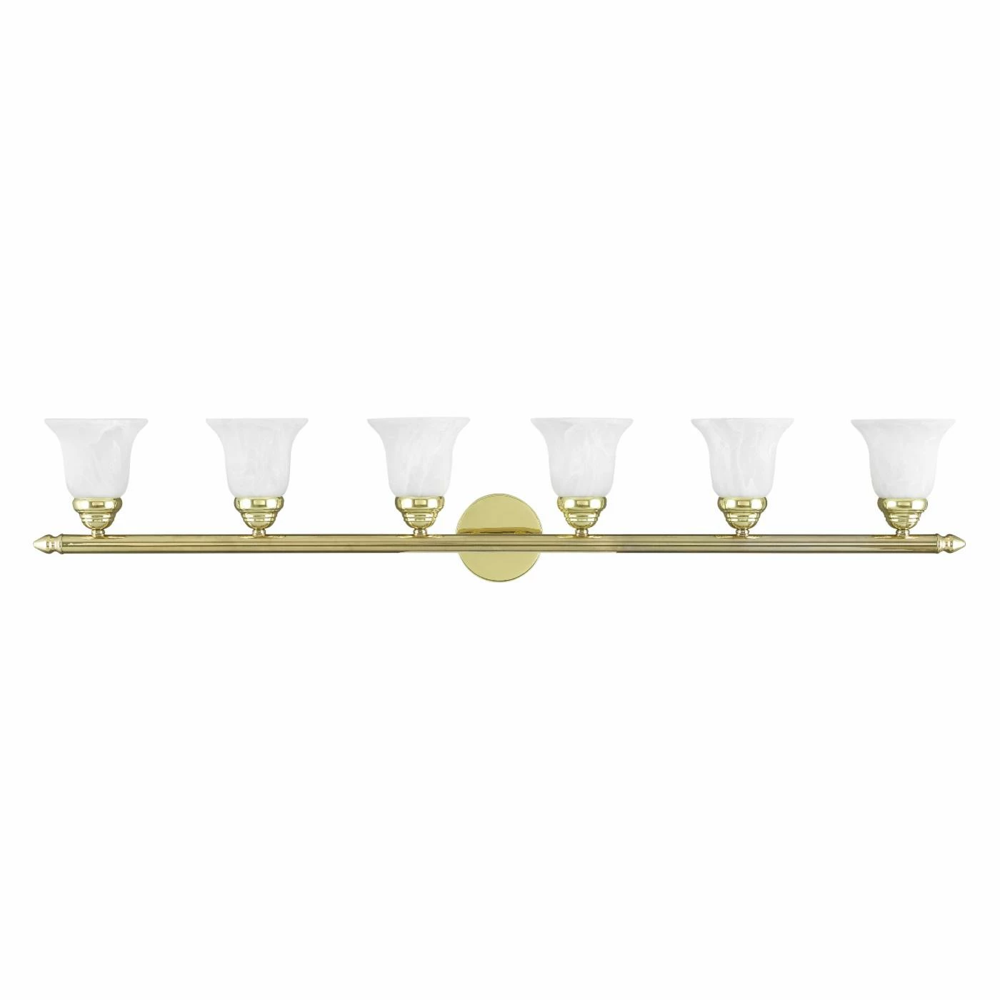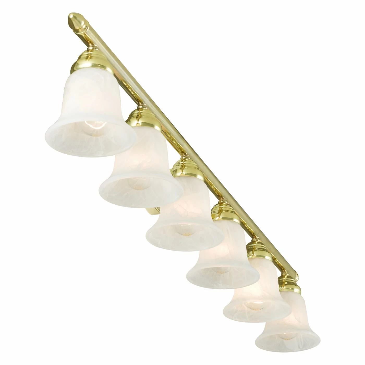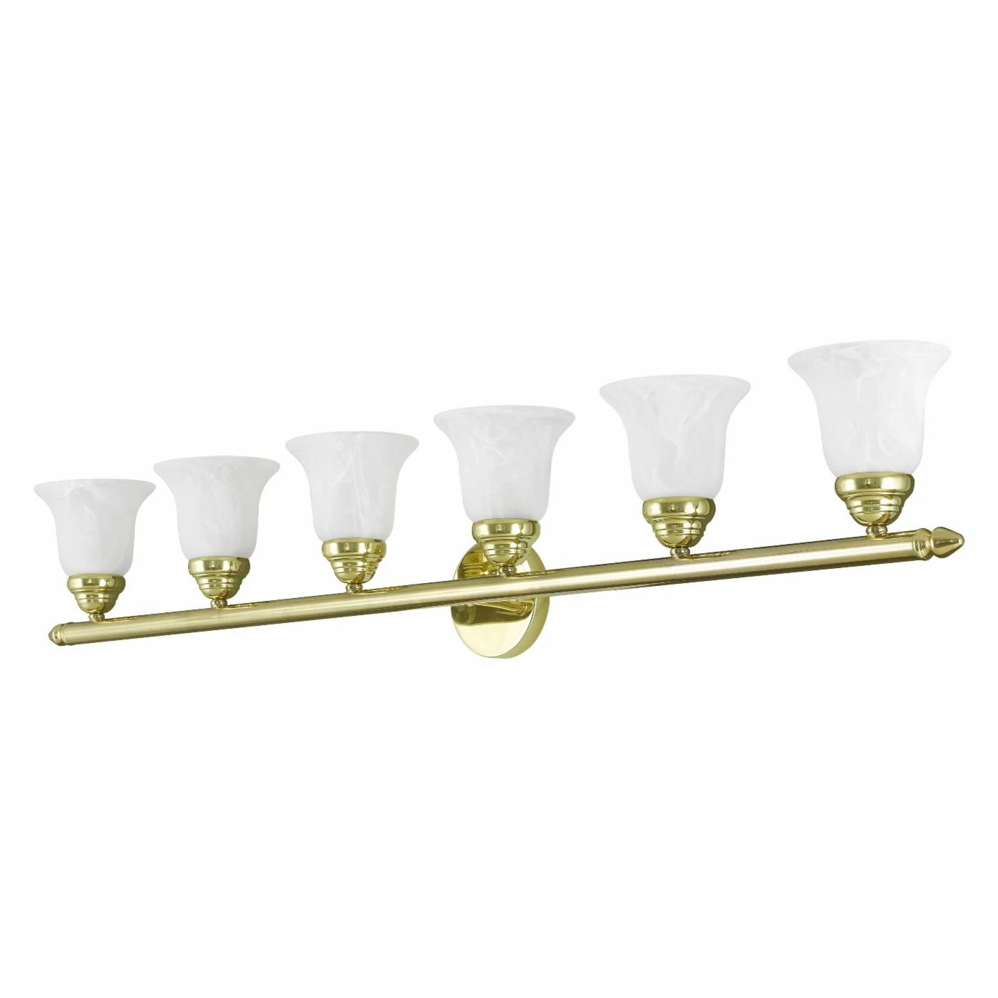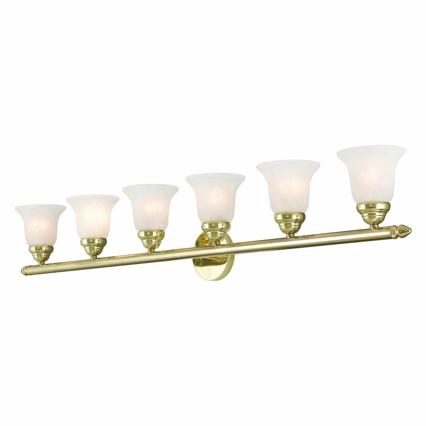 Equipped with white satin glass for bright illumination, this Livex Lighting Neptune 1066-02 Bathroom Vanity Light is also finished in polished brass for a rich feel. This vanity light requires six 100-watt incandescent bulbs (not included).