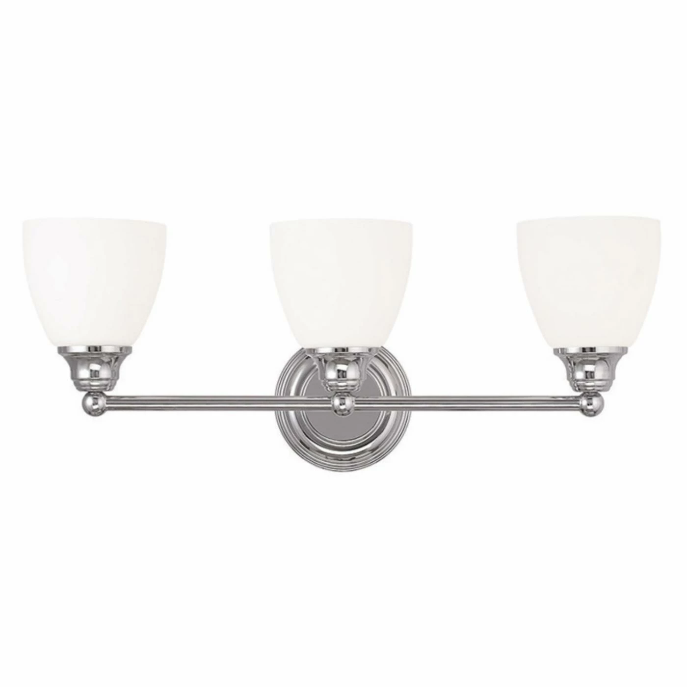 Embellish your contemporary bathroom dΓ©cor in style with the amply lit Livex Lighting Somerville 13663 3 Light Bathroom Vanity Light. Requires three 100-watt medium base bulbs (not included).