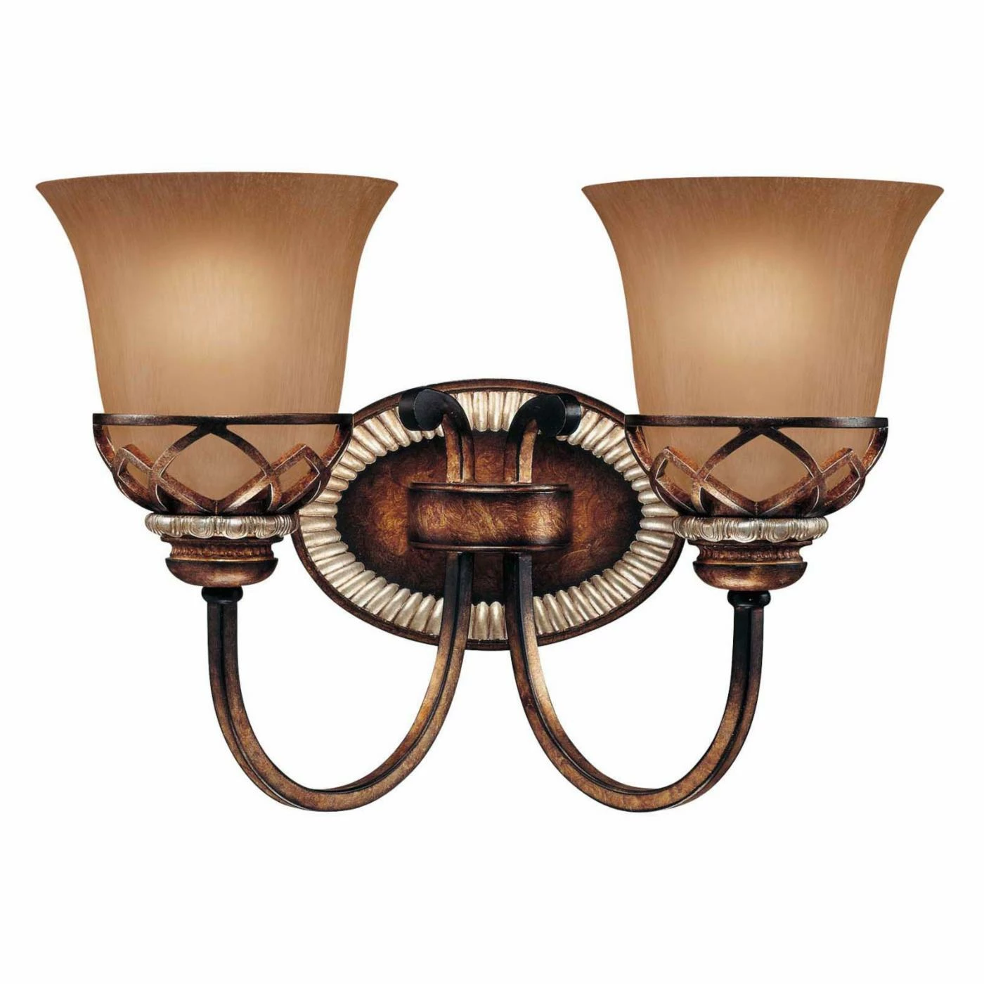 Warm and inviting, the Minka Lavery Aston Court 5742-206 Bathroom Vanity Light makes a sophisticated addition to any bathroom. This wall-mounted fixture boasts a dimensional design around the oval base. Two arched arms lead up to Avoiro Mezzo shades.
