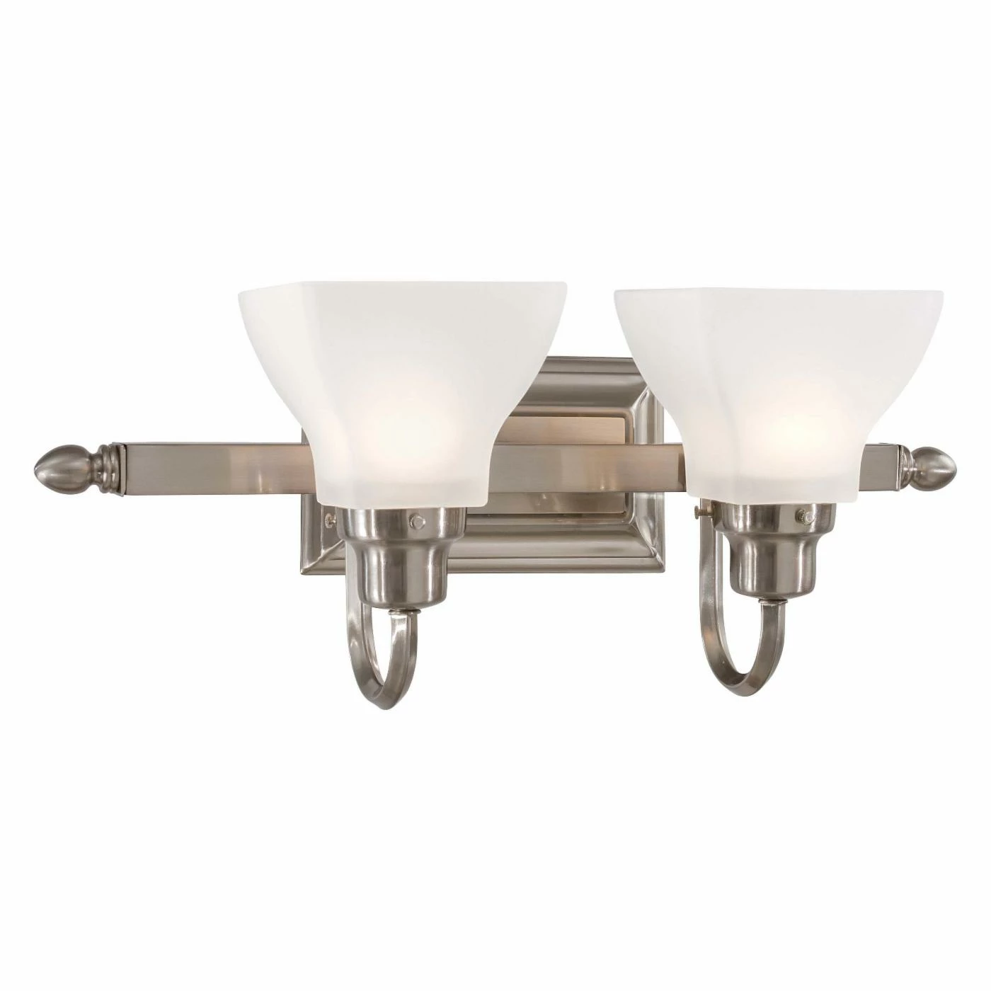 Square style lines enhance the modern elegance of the Minka Lavery Mission Ridge 5582-84 Bathroom Vanity Light. This small but sophisticated vanity light is ideal for powder rooms and guest bathrooms in your home. The brushed nickel finish is perfectly paired with etched glass shades.