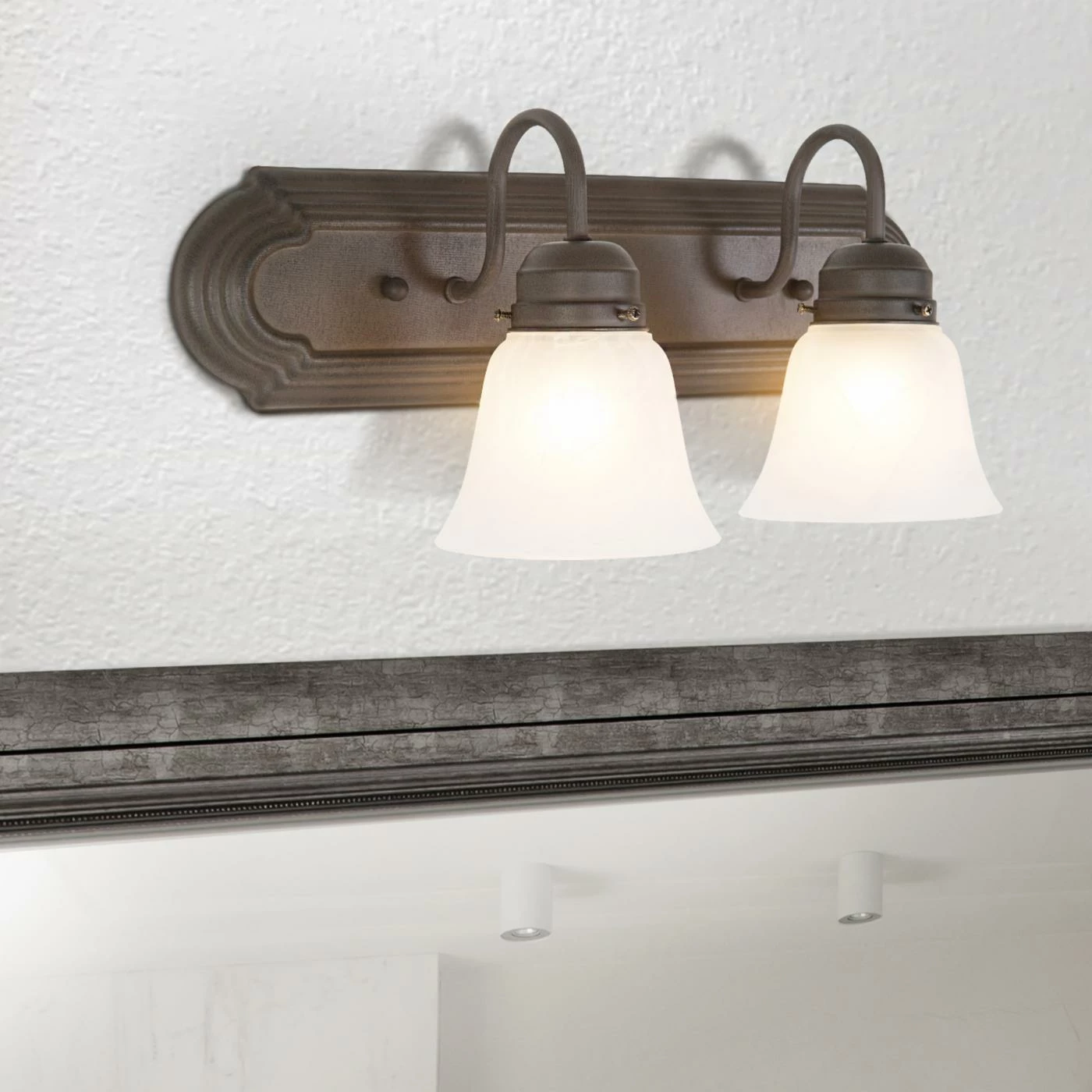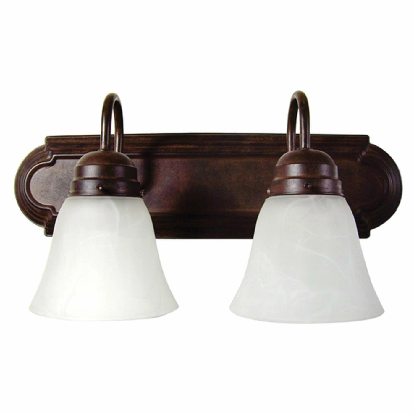 Smooth white alabaster glass shades on this Yosemite Home Decor 4992-2DB Vanity Light guarantee soft yet bright lighting. The dark brown finish underscores its overall sleekness. This vanity light requires two 60-watt incandescent bulbs (not included).