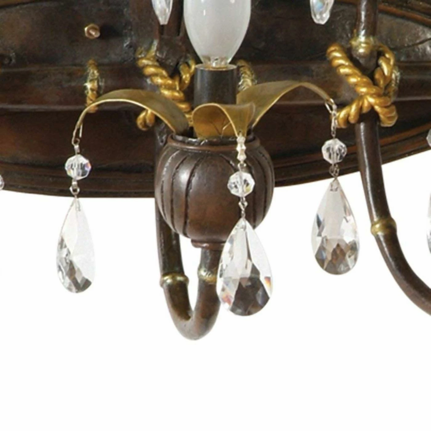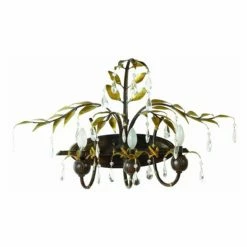 Gilded metal leaves and rope plus faceted crystal drops give this Yosemite Home Decor NPJ787 Vanity Light its organic glamour. A rich maple finish enhances each detail on this vanity light. It requires three 40-watt bulbs (not included).