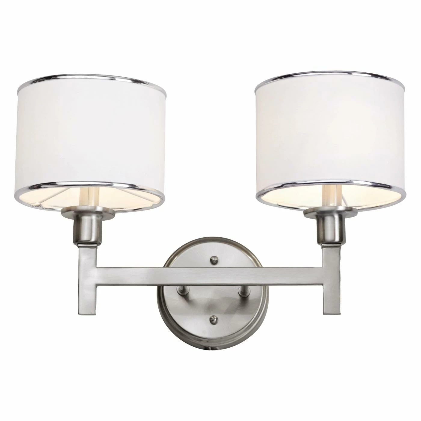 With understated elegance, the Transglobe 1052 BN Bath Bar – Brushed Nickel – 17W in. is designed to complement your contemporary or traditional bathroom in simple style. Solidly constructed of metal, with a smooth, brushed nickel finish, this vanity light holds two candelabra bulbs framed by a linen shade.