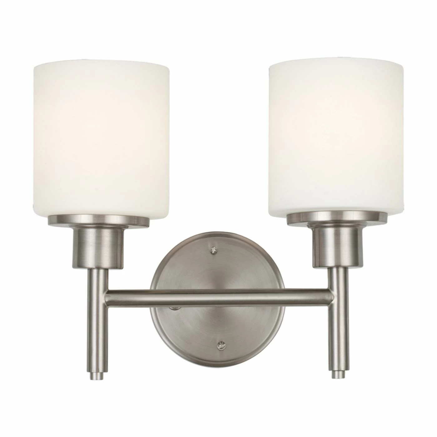 Clean-lined styling brings the Design House Aubrey 2 Light LED Bathroom Vanity Light fresh, contemporary appeal. This vanity light features a steel base that’s topped in a gleaming satin nickel finish. Its base is attractively paired with two frosted glass shades that gently diffuse light for a pleasant illumination. It includes two LED bulbs.