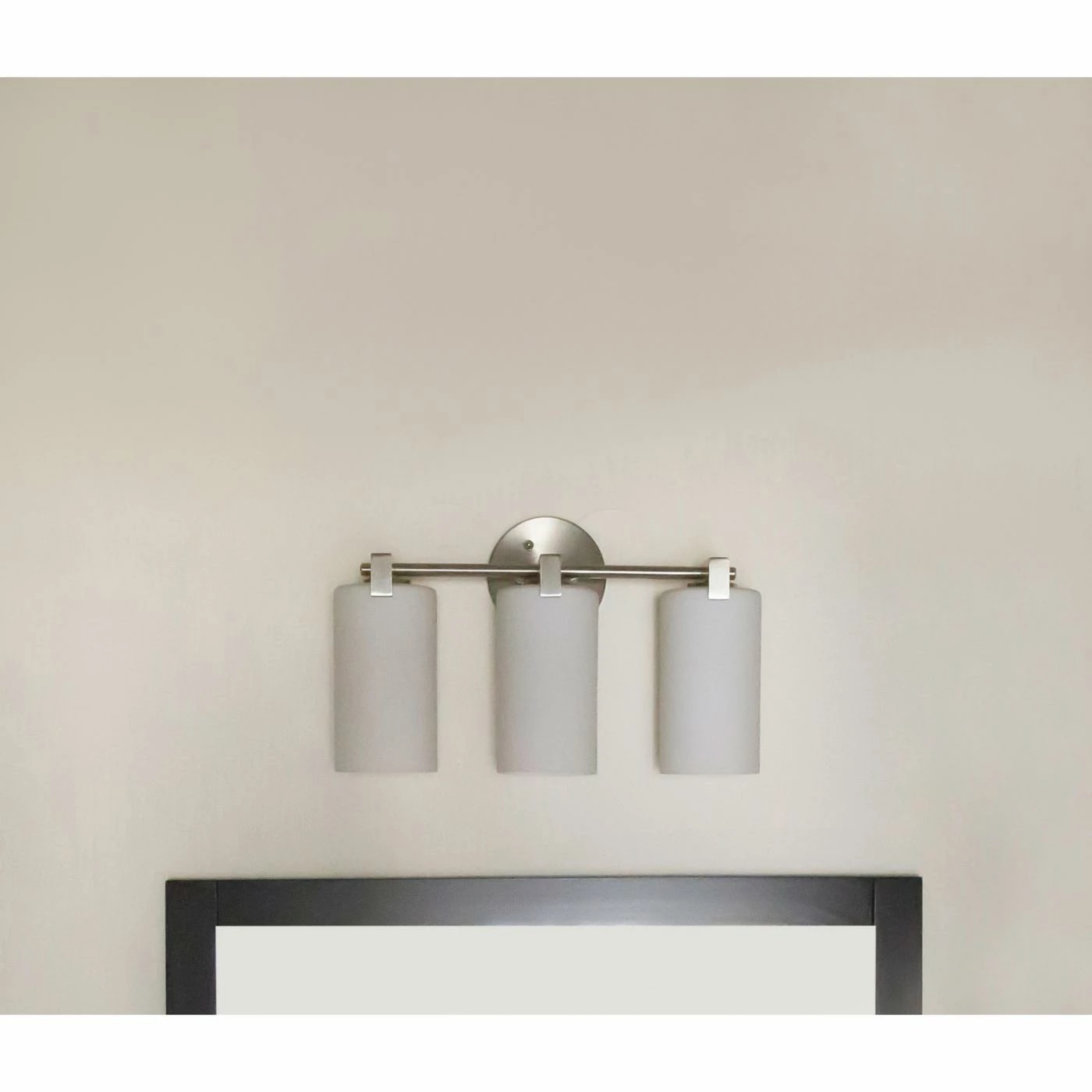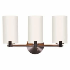 Reinvent your master- or guest-bathroom for a more modern appeal with the Design House Eastport 3 Light Bathroom Vanity Light. This vanity light is durable and damp-rated, supported by a steel frame with a satin nickel finish. Three 60-watt sockets are supported by the bar arm and can be installed up or down as desired. Each socket comes with its own tubed shade made from frosted glass. The light does not include bulbs.