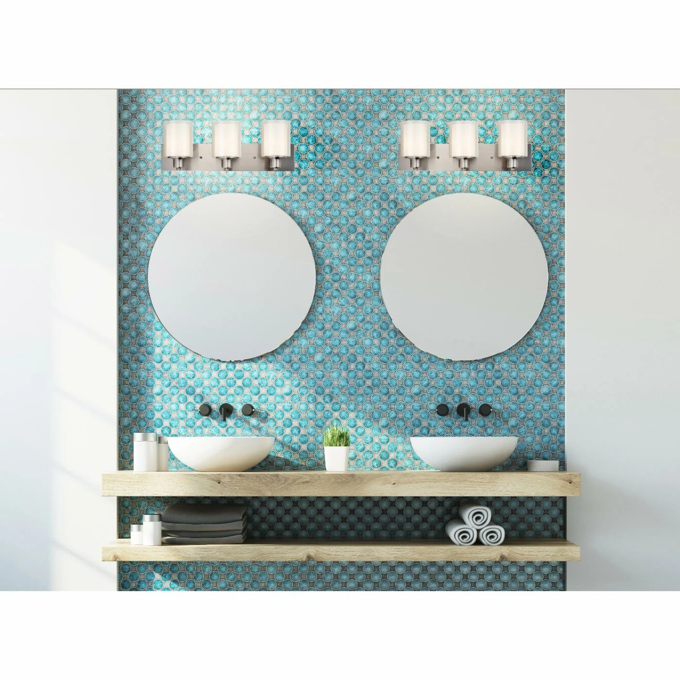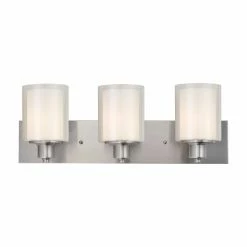 Enjoy a sharp, minimalist upgrade to your bathroom’s lighting with the Design House Penn 3 Light Bathroom Vanity Light. This vanity light is crafted from thick steel and comes finished in satin nickel. Three sockets are built into the design, each capped by a tubed shade with a frosted-glass inner layer and clear glass outer layer. Each socket is designed for a 60-watt bulb (not included).