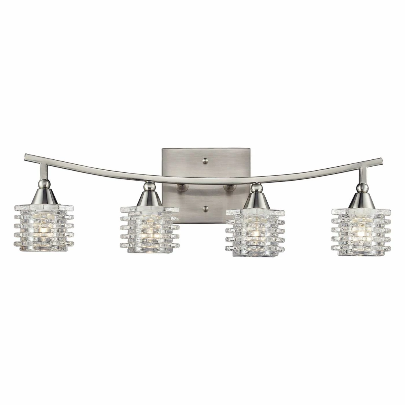 The curved arm and uniquely shaped glass shades of the ELK Lighting Matrix 17132/4 Bathbar – Satin Nickel – 21W in. give it a sculptural appeal that will enhance any bathroom decor. This bath bar has a solid metal body finished in satin nickel, and uses four 40-watt G9 bulbs (not included).