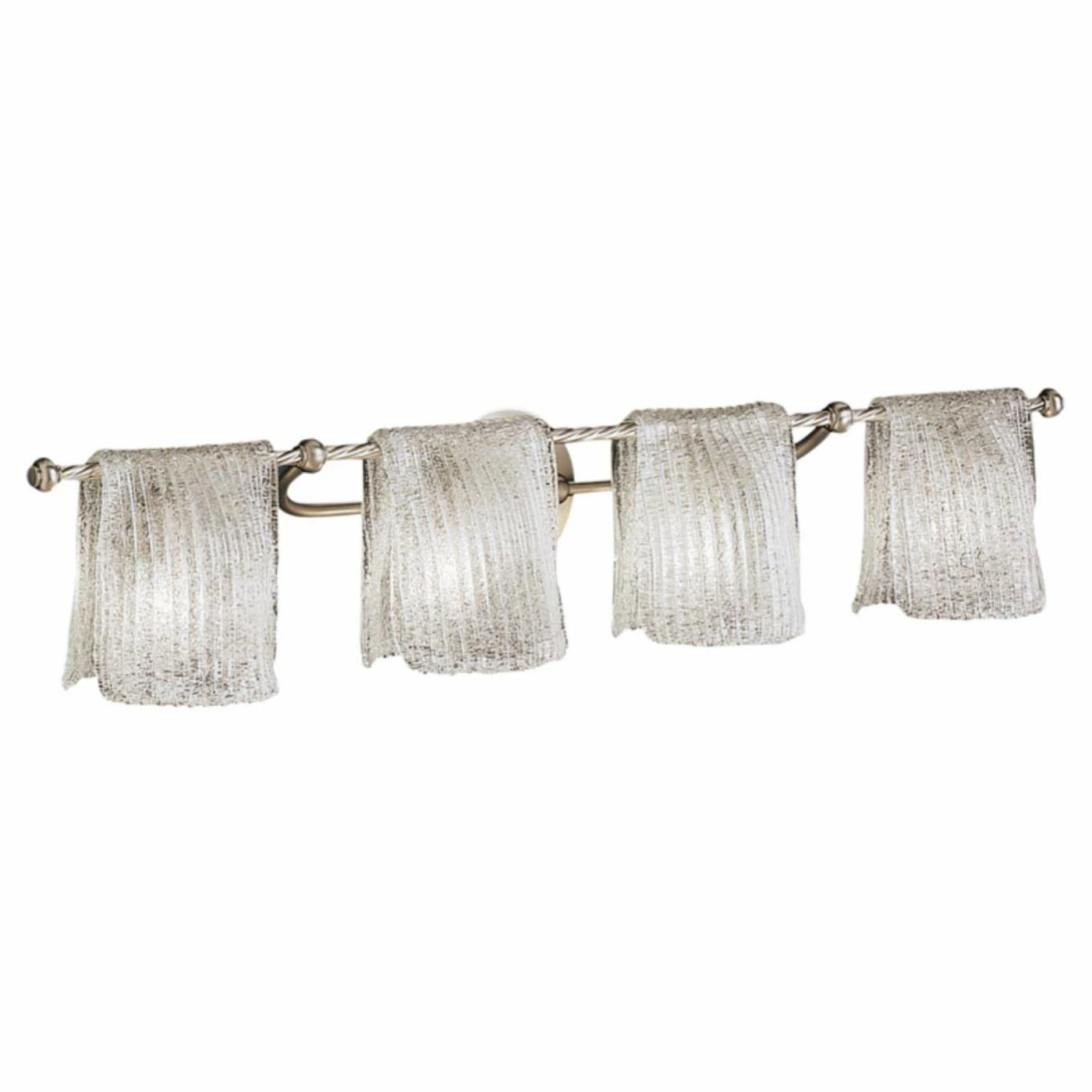 Glass covers that look like drapes add a unique element to the Kichler Drapes Bathroom Wall Light – 35W in. Brushed Nickel. Finished in brushed nickel, this wall light is suitable for damp locations such as your bathroom and laundry, and its transitional style fits well with both traditional and contemporary homes.