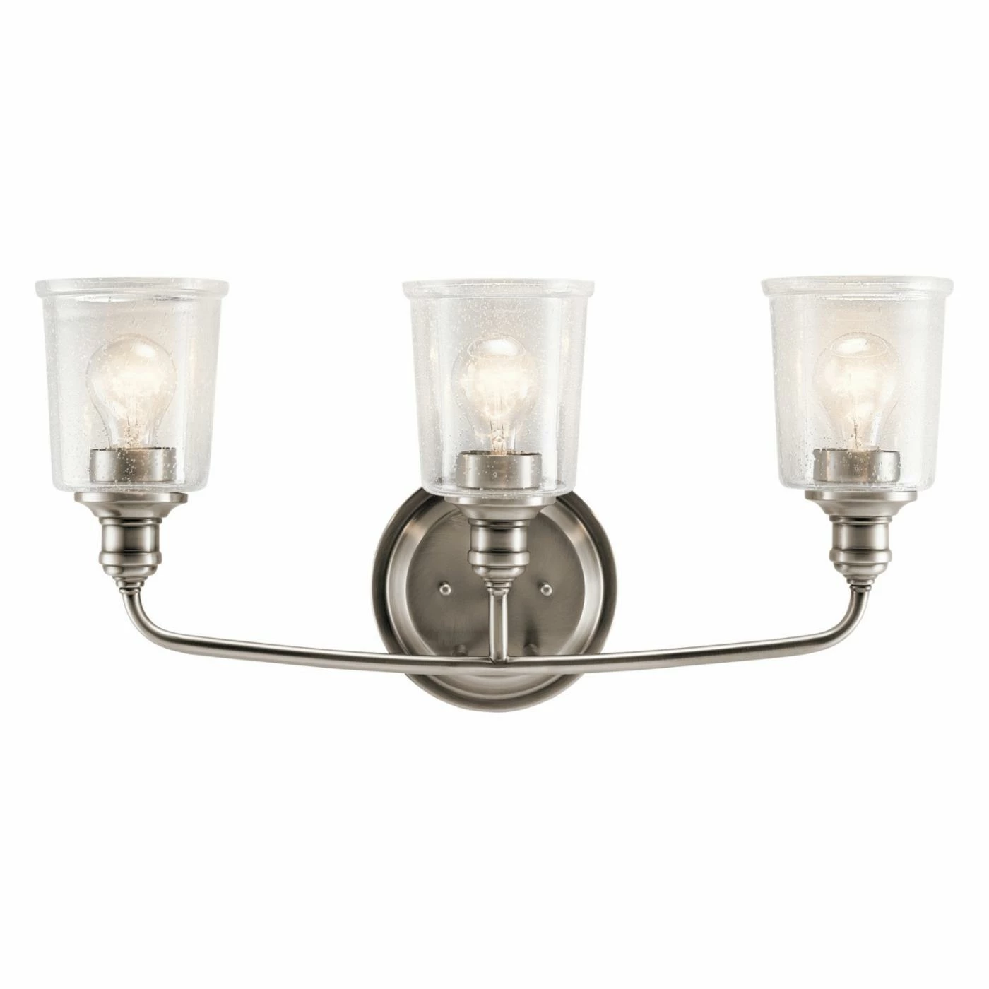 Complete your bathroom dΓ©cor with the Kichler Waverly 45747 Bath Light. Made from sturdy steel, it features three clear, seeded glass shades. Pair Edison-style bulbs (not included) to complete a vintage look. Pick from the select finishes.