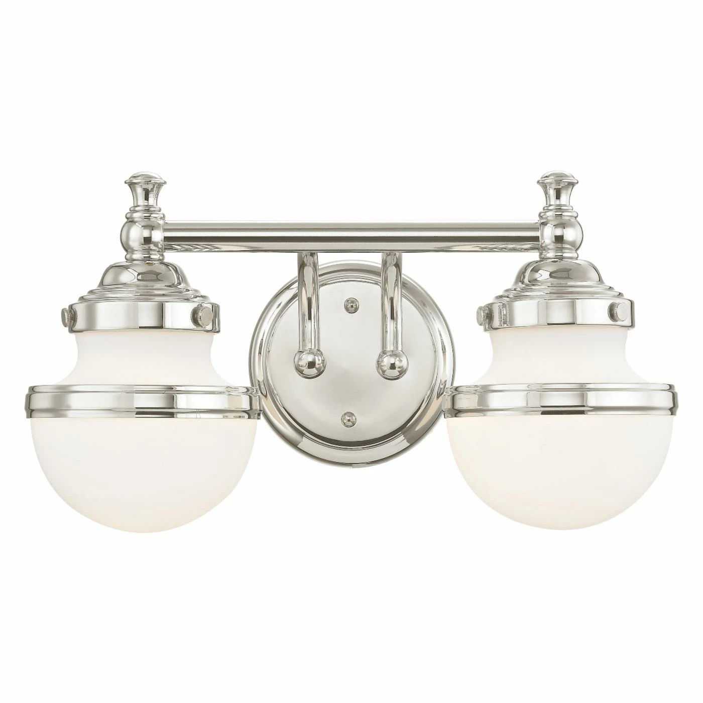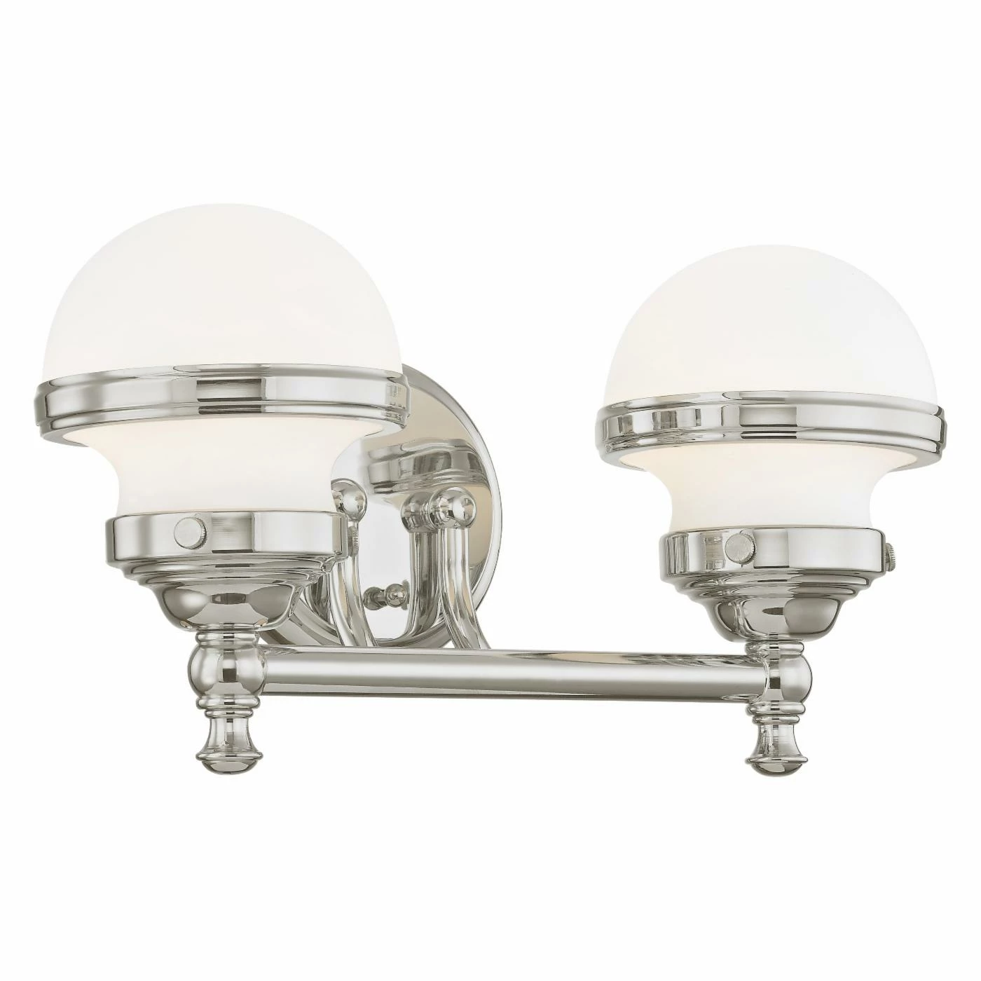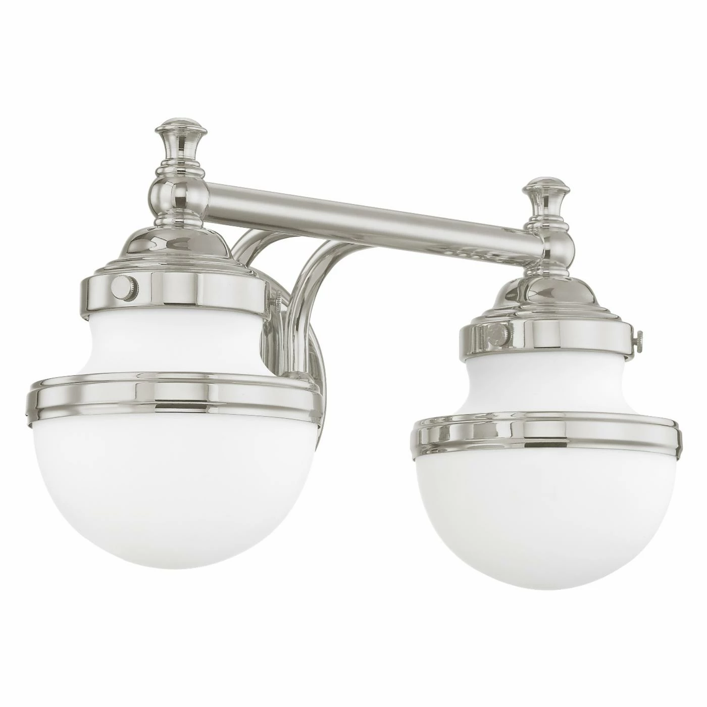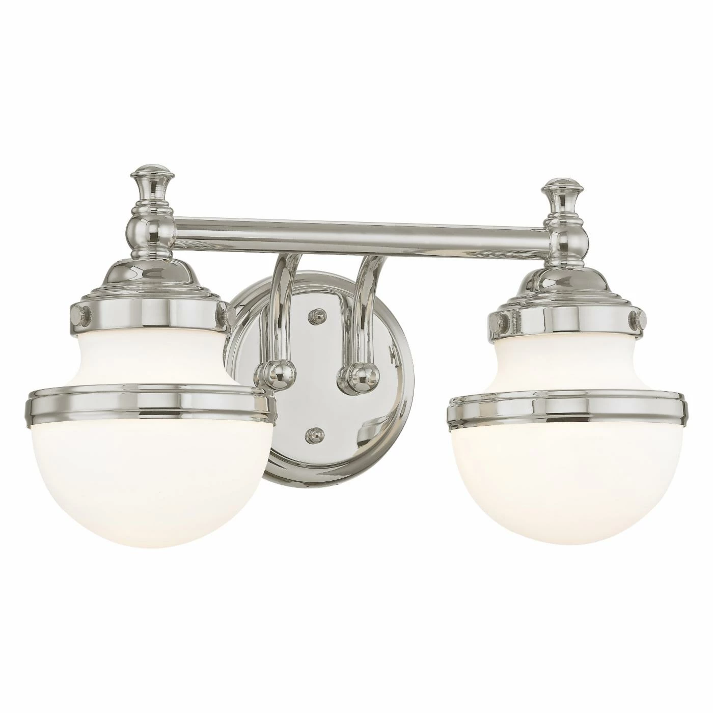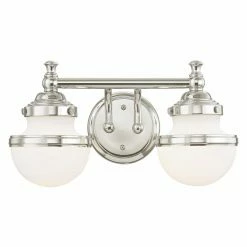 The elegant, streamlined motif of this Livex Lighting Oldwick 5712-05 Bathroom Vanity Light is apparent in the satin opal-white glass and polished chrome finish. This vanity light requires two 75-watt bulbs (not included).