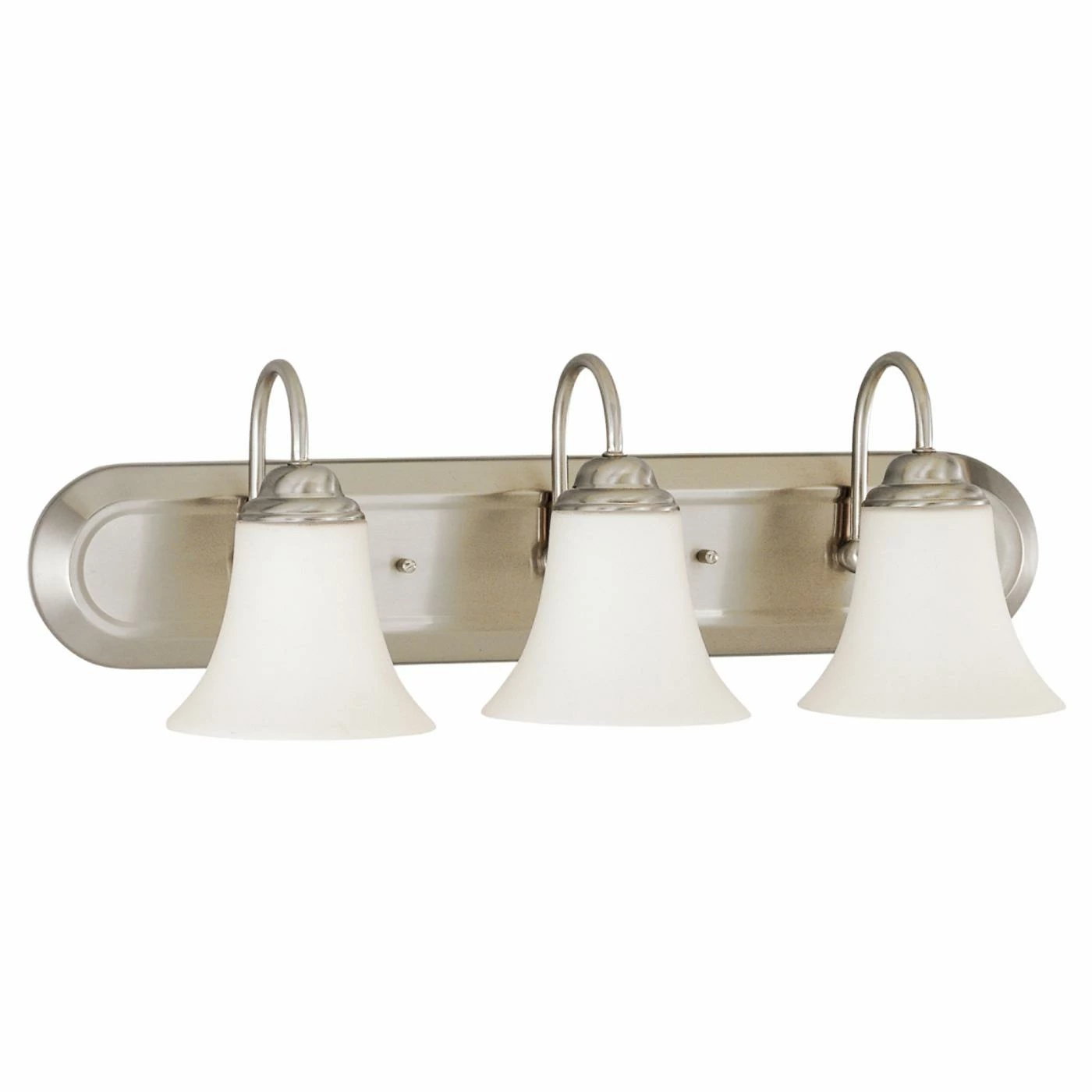 Enhance the elegance of your setting with the Nuvo 60/1 Dupont 3 Light Bathroom Vanity Light. Constructed from high-quality materials, this vanity light features three downward lights with bell-shaped shades. Each shade boasts a white satin finish that’s sure to pair well with any decorative plan. This vanity light brims with function, ambiance, and sophisticated style.