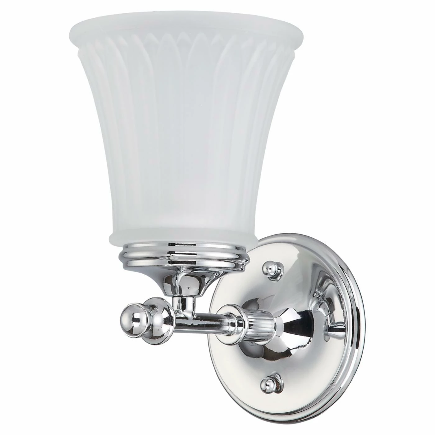 Update your dΓ©cor with the trend-right Nuvo Teller 60/4261 Bathroom Vanity Light. Suitable for damp locations like bathrooms, this fixture is crafted from high-quality materials for enhanced longevity. It features an upward facing light complemented by a frosted white shade. With its transitional style and polished chrome finish, this fixture easily coordinates with most decorative schemes.