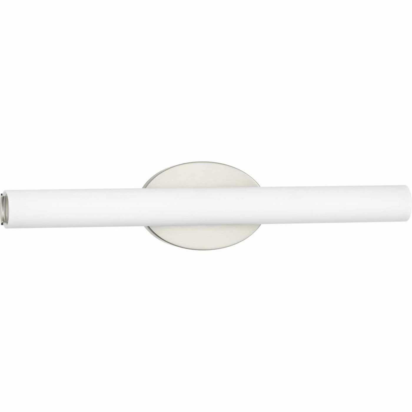 The Progress Lighting Parallel LED 22 in. Linear Bathroom Vanity Light features an oval back that holds a horizontal shade. The glass cylinder shade is featured in white, which will easily blend into your home. The steel frame comes in your choice of available finish option, so you may customize it to your style. This light fixture requires one 35-watt LED bulb that is not included.