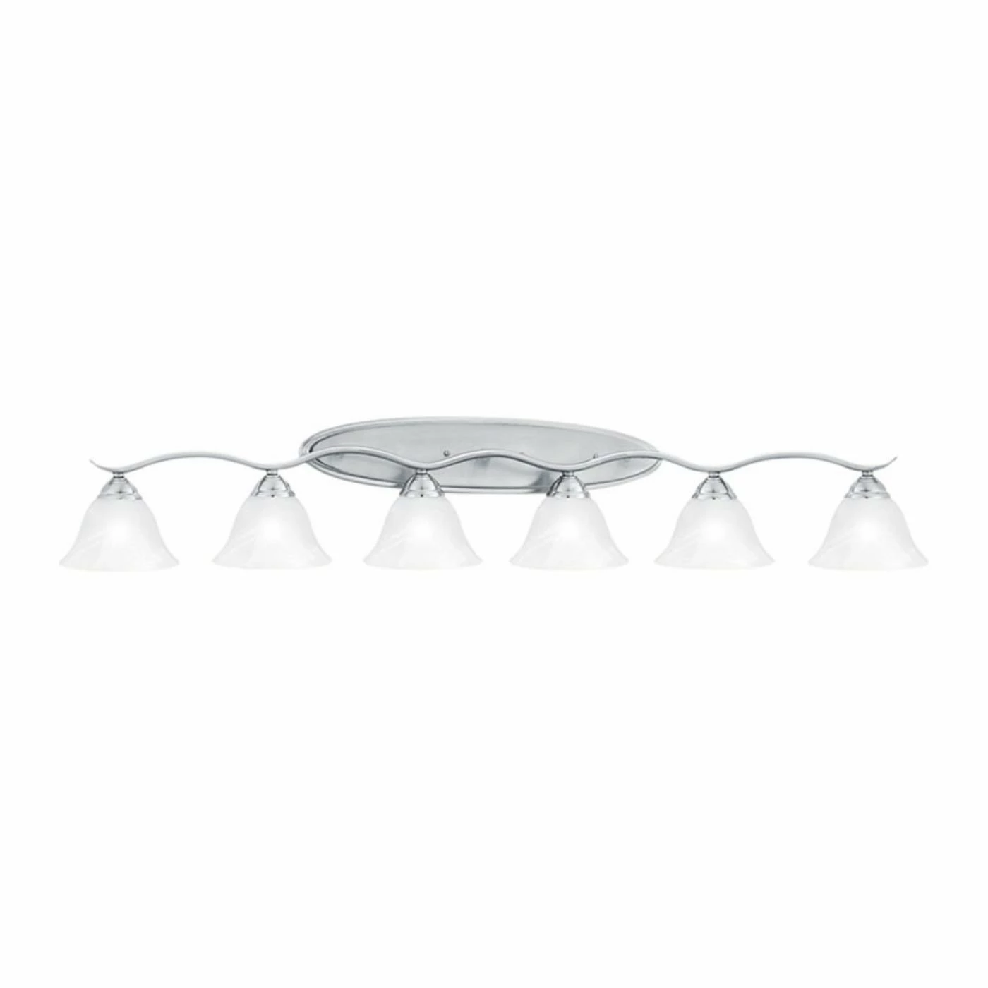 Get just the right lighting effects in your contemporary bathroom with the Thomas Lighting Prestige 6 Light Bathroom Vanity Light. The six white marble glass bowl shades can face up or down to provide ambient or task lighting in your sink area.