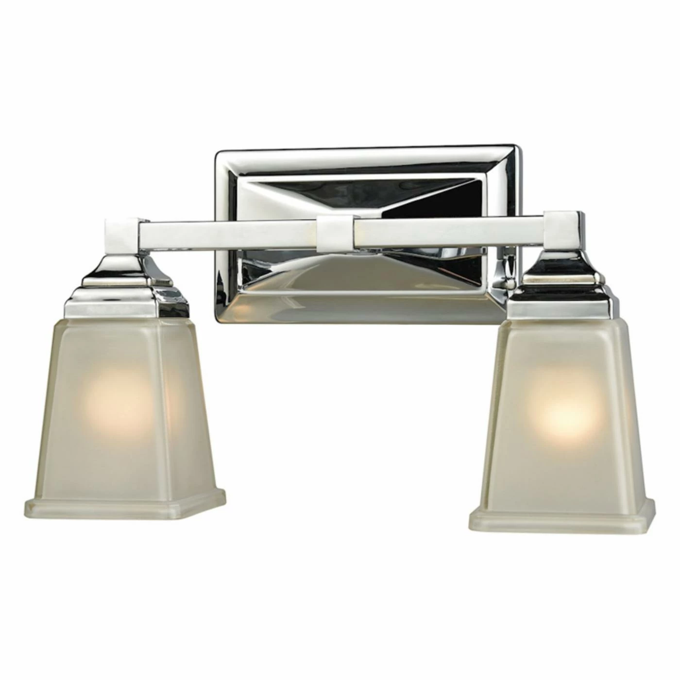 Sharp angles and clean lines make the Thomas Lighting Sinclair CN57321 Vanity Light an appealing addition to transitional bathrooms. The two-lamp fixture features frosted glass shades that diffuse the illumination for a soft, warm lighting effect. You can aim the lamps upwards or downwards to suit your lighting needs.