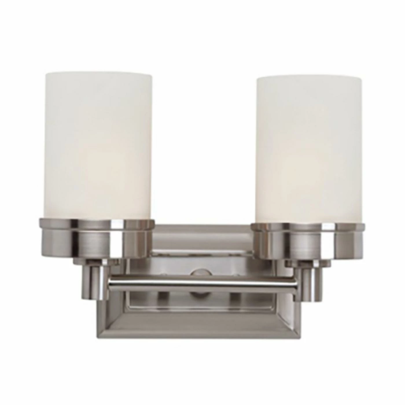 Add a touch of cool design to your powder room with the Trans Globe Lighting Fusion 70332 BN Bathroom Vanity Light. Made for smaller spaces, this vanity light features two frosted shades for a soft glow and hip style.