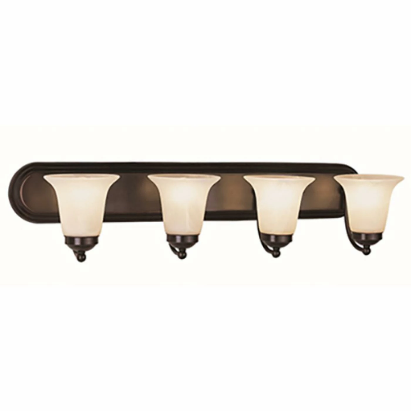 Decorate your bathroom in a bright and sophisticated manner with the Trans Globe Lighting Rusty 3504 Bathroom Vanity Light. This four-light vanity bar features bell shades for a classic look.