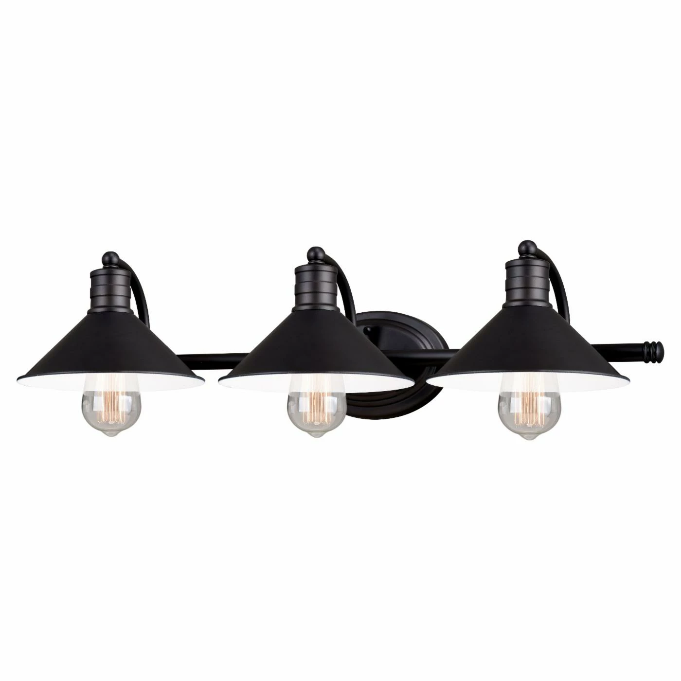 With illumination from three 100-watt bulbs, the Vaxcel Akron 3 Light Bathroom Vanity Light is a great pick for bathrooms with double sinks. The exposed-bulb design allows you to enjoy maximum lighting and flared shades create downward streams. This steel fixture is an excellent choice for adding flair to a farmhouse or industrial-themed space.